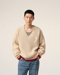 Sweater in college ribs wool. Unisex product Half english ribs stitch "AMI Paris" knitted patch embroidered on the back under collar Ami de Coeur knitted patch embroidered on chest 63 cm center back length (size M) 59 cm center back length (size XS) Made in Portugal (with love) REF: UKS268.KN0068.136 SIZE & FIT This style is unisex and it's design to be worn oversize. Take your normal size. Man model is 1m86 / 6'1" and is wearing a size M. Woman model is 1m81 / 5'11" and is wearing a size XS. COMPOSITION & CARE GUIDE 100% New Wool Hand wash low temperature Chlorine prohibited Do not tumble dry Dry flat Cool iron Dry clean possible