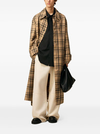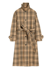 checked belted wool trench coat Highlights - Camel brown - Checked pattern - Horn buttons - Adjustable cuffs - Belted waist - Leather label Imported Composition Outer: Virgin Wool 100% Lining: Polyester 50%, Cotton 50% Washing instructions Dry Clean Only