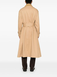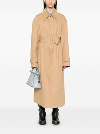 belted coat Highlights - Camel beige - Cotton - Detachable and adjustable waist belt - Front zip fastening - Concealed front press-stud fastening - Corduroy collar - Drop shoulder - Long sleeves - Press-stud fastening cuffs - Belt loops - Two side welt pockets - Central rear vent - Unlined - Straight hem - Long length - When buying this unisex item, keep in mind that it is graded in standard men's sizing. Imported Composition Outer: Cotton 100% Lining: Polyester 65%, Cotton 35% SIZE & FIT Model measurements Height 5 ft 10 in(1.78 m) Bust/Chest 33.85 in(86 cm) Hips 36.61 in(93 cm) Waist 26.77 in(68 cm) FittingInformation This piece is unisex – if you usually select men's sizing expect a loose fit throughout; if you usually select women's sizes, expect an oversized fit The belt offers adjustability for fitted preferences Made from a midweight non-stretch fabric