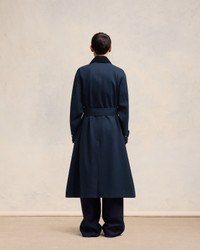 Belted mac in double-sided cotton canvas. Unisex product 124 cm center back length (size XS) 130 cm center back length (size M) Water-repellent fabric Collar in velvet Nickel double cursor metal zipper with "ami" engraved pullers First snap button in nickel color on the collar with "ami" banding Invisible snap buttons in nickel color Belt in main fabric Adjustable cuff with snap button Embossed Ami de Coeur at the back of the collar Made in Romania (with love) REF : UJK505.CO0081.4018 SIZE & FIT This style is unisex. For man, take your normal size. For woman, take one size down than your usual size. Man model is 1m88 / 6'2" and is wearing a size M. Woman model is 1m80 / 5'11" and is wearing a size XS. COMPOSITION & CARE GUIDE 100% Cotton Do not wash Chlorine prohibited Do not tumble dry Cool iron Dry clean petroleum solvent only on a gentle process