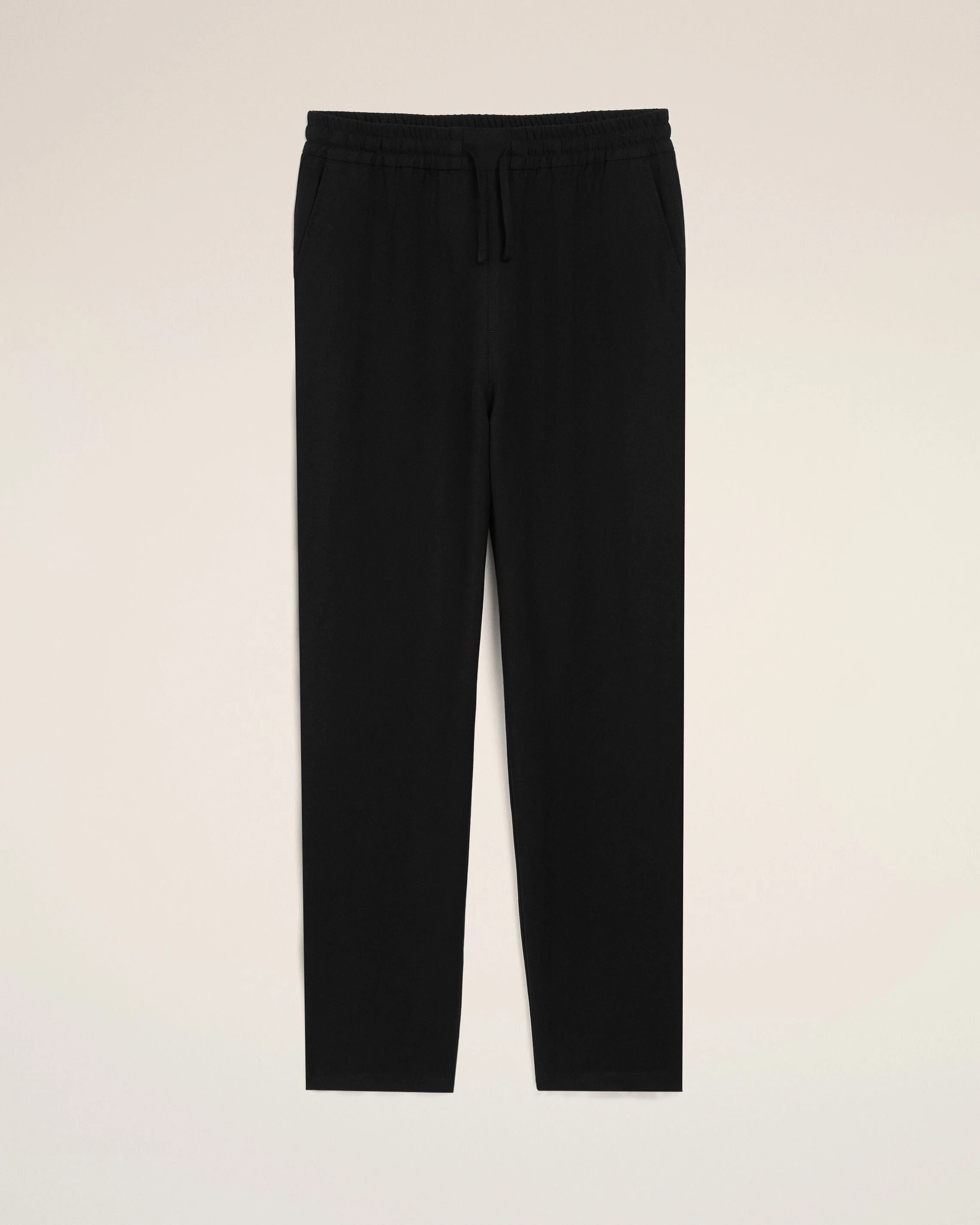 Elasticated waist trousers in viscose and linen gabardine. Straight leg Elasticated waist with drawstring Patch pockets on the back Ami de Coeur plate on the back pocket Made in Portugal (with love) REF: HTR868.VI0052.001 SIZE & FIT Fits true to size. Take your normal size. Man model is 186 cm / 6"1 and is wearing a size M. COMPOSITION & CARE GUIDE Main Material : 54% Viscose, 46% Linen Do Not Wash Chlorine Prohibited Do Not Tumble Dry Medium Iron Dry Clean Petroleum Solvent Only On A Gentle Process