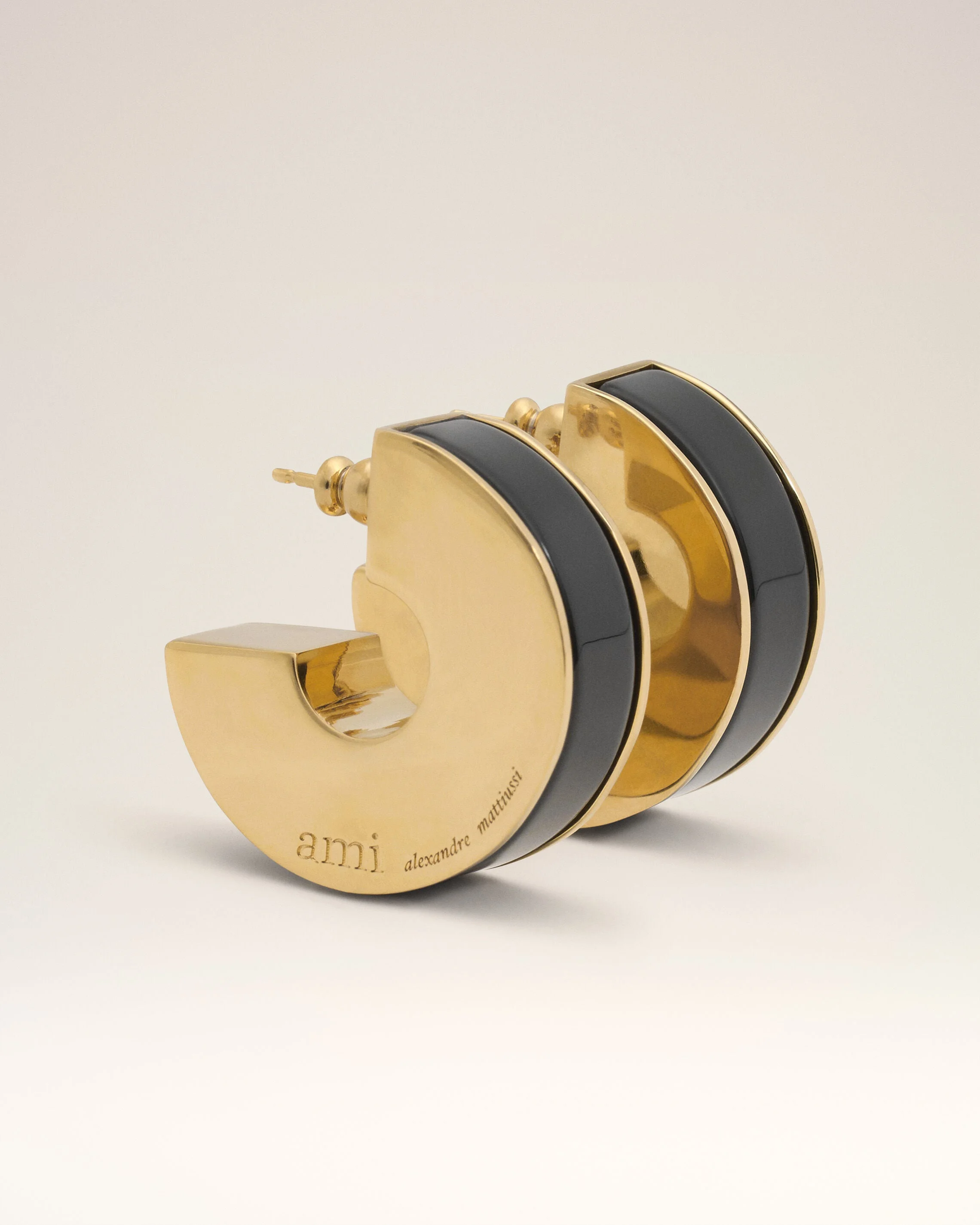 Earrings in gold-plated brass with glossy resin. Engraved "ami alexandre mattiussi" logo Sold in pairs Made in Italy (with love) REF: UJW218.361.001 SIZE & FIT One size. COMPOSITION & CARE GUIDE 100% Brass Use a soft cloth for cleaning.