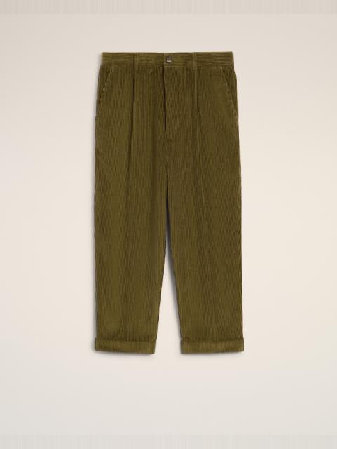 Carrot oversized fit trousers in corduroy velvet. Oversized carrot fit Corduroy trousers Buttoned fly Horn buttons Cuffed hems "ami alexandre mattiussi" patch on the back Front pleats 21 cm bottom leg width (size M) Made in Portugal (with love) REF: HTR121.CO0131.020 SIZE & FIT Fits true to size. Take your normal size. Model is 185 cm / 6"1 and is wearing a size M. COMPOSITION & CARE GUIDE Pocket Lining : 65% Polyester 35% Cotton Main Material : 100% Cotton Machine wash at 30°c gentle Chlorine prohibited Do not tumble dry Cool iron Dry clean possible Contains non-textile parts of animal origin