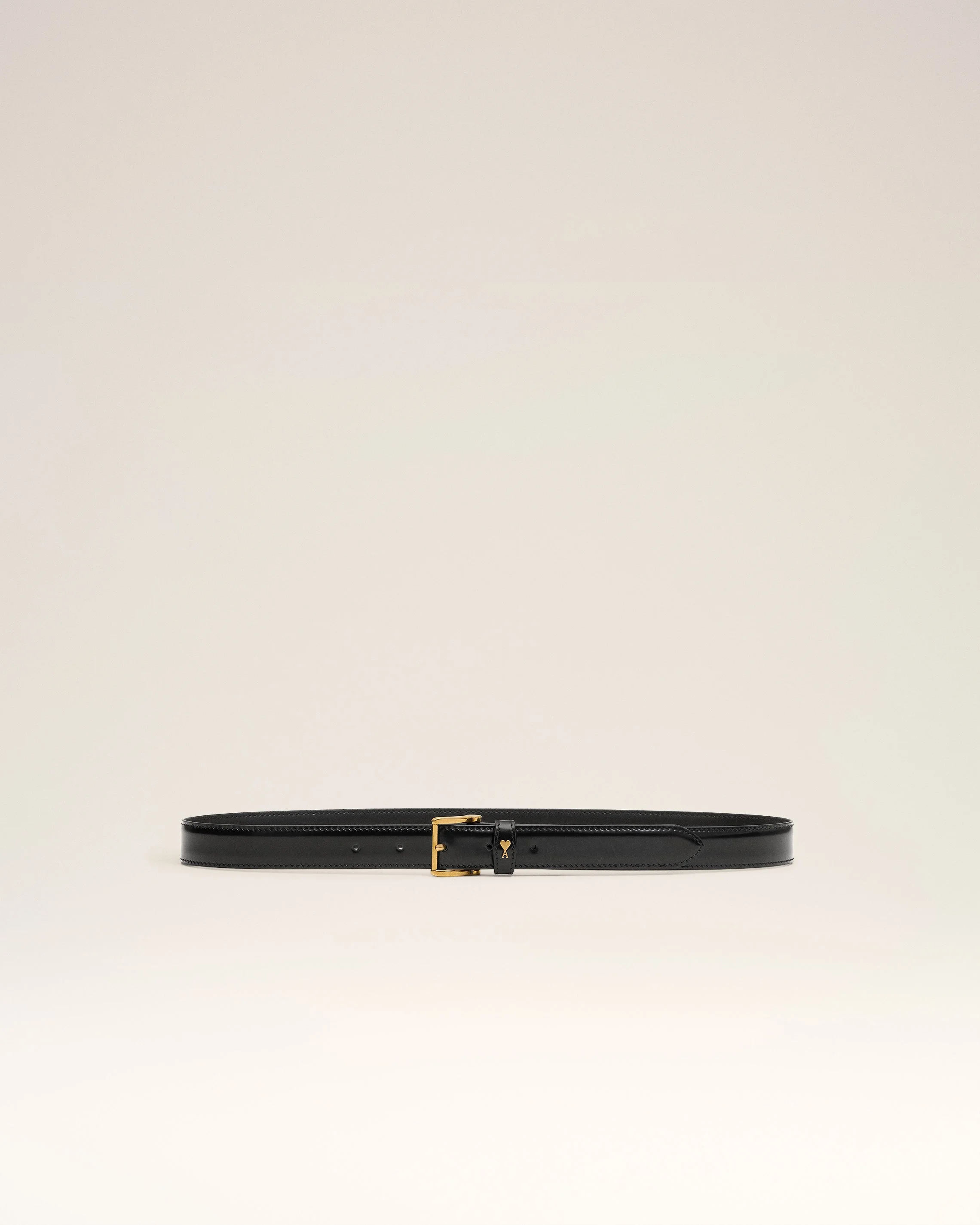 Paris Paris belt in glazed leather. Unisex product Metal buckle and Ami de Coeur stud in vibrated brass color Width: 25 mm Sizes: 75 / 85 / 95 / 105 Made in Spain (with love) REF: UBL029.AL0139.0015 SIZE & FIT Fits true to size. Take your normal size. COMPOSITION & CARE GUIDE Main Material : 100% Calfskin Main Lining : 100% Calfskin Do not wash