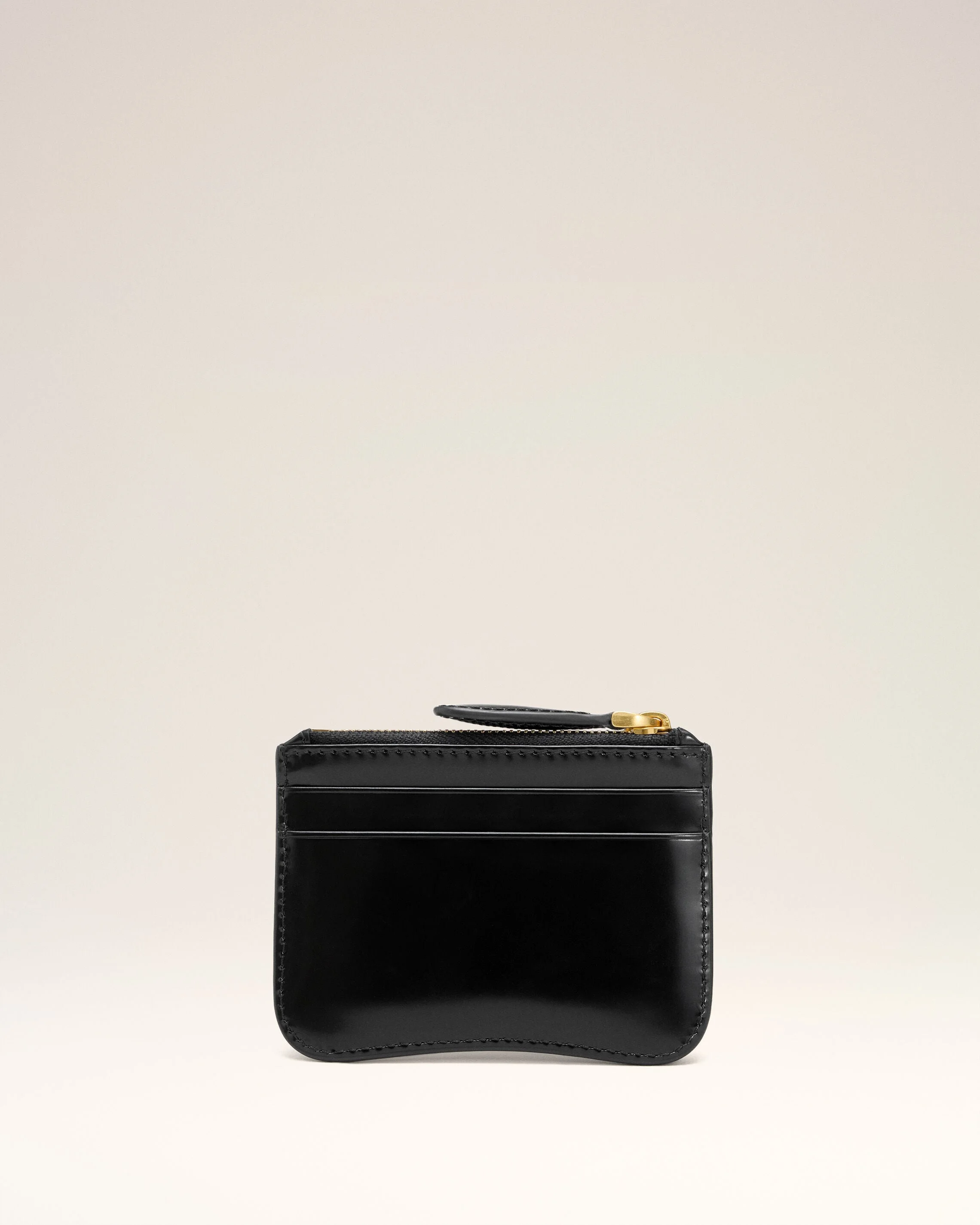 BLACK GLAZED LEATHER PARIS PARIS ZIPPED CARD HOLDER