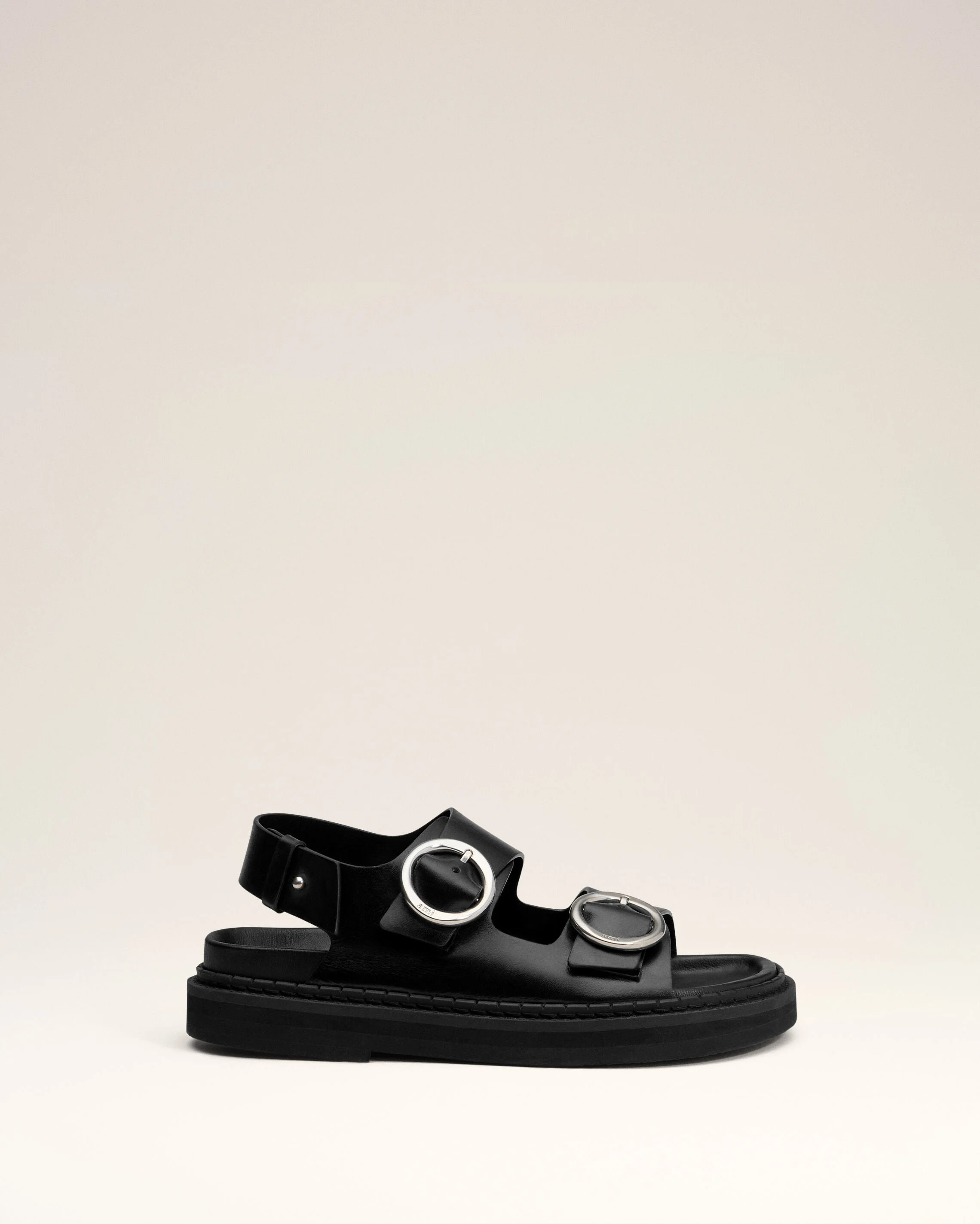 BLACK LEATHER FUSSBET MIDI SANDALS