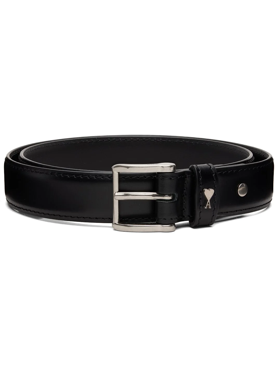 Buffed calfskin belt. · Pin-buckle fastening · Logo hardware at keeper loop · W1" Supplier color: Black/Vibrated brass Calfskin. Made in Spain 252482M131003