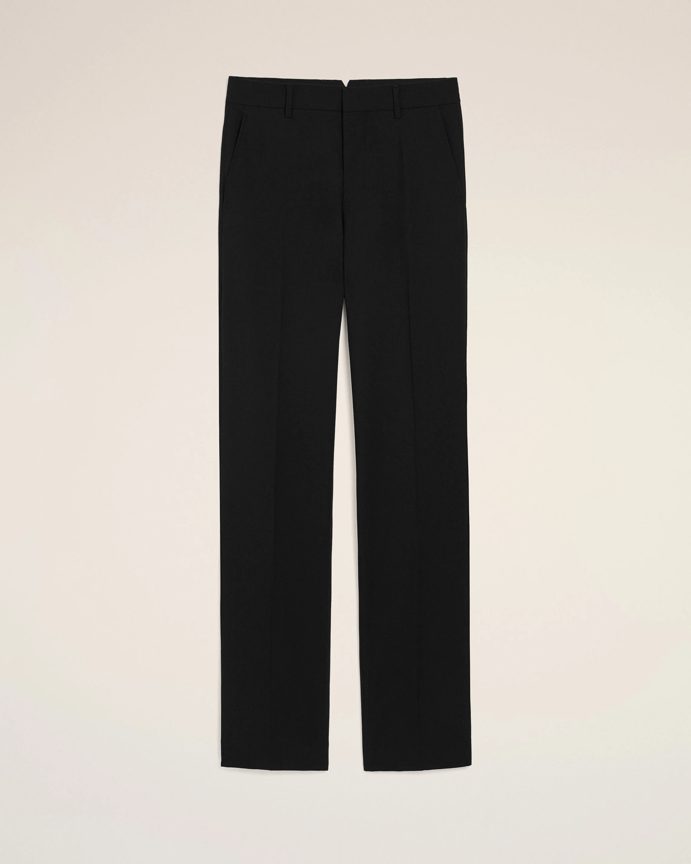 Straight fit trousers in wool gabardine. Straight fit Front lining to knees Zipped fly V detail on the back Ami waistband Buttoned back pockets Horn buttons Made in Tunisia (with love) REF: HTR506.WV0194.001 SIZE & FIT Fits true to size. Take your normal size. Man model is 184 cm / 6"0 and is wearing a size 40. COMPOSITION & CARE GUIDE Main Material : 100% New Wool Main Lining : 100% Polyester Pocket Lining : 65% Polyester, 35% Cotton Chlorine Prohibited Do Not Tumble Dry Dry Clean Gentle Cool Iron Do Not Wash
