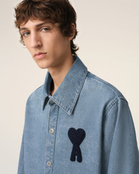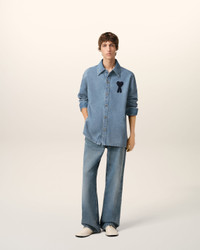 Overshirt in used indigo denim. Oversize fit 77 cm center back length (size M) Tonal Ami de Coeur knitted patch embroidered on the chest Denim snap buttons in nickel color Tobacco topstitches Made in Tunisia (with love) REF: HJK275.DE0046.480 SIZE & FIT This item is designed to be worn lose. Take your normal size. Model is 1m86 / 6'1" and is wearing a size M. COMPOSITION & CARE GUIDE 100% Cotton Machine wash at 30°C Chlorine prohibited Do not tumble dry Medium iron Dry clean possible