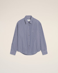 Embossed Ami de Coeur shirt in striped coton popeline. Unisex product Boxy fit Classic collar Buttonned tab on front and cuffs Mother of pearl buttons Tonal Ami de Coeur embroidery on the chest 72 cm center back length (size M) Made in Poland (with love) REF: USH766.CO0133.4901 SIZE & FIT This style is unisex and it's design to be worn oversize. Take your normal size. Man model is 187 cm / 6"2 and is wearing a size M. Woman model is 178 cm / 5"10 and is wearing a size XS. COMPOSITION & CARE GUIDE Main Material : 100% Cotton Chlorine prohibited Do not tumble dry Dry clean gentle Cool iron Machine wash at 30°c gentle