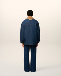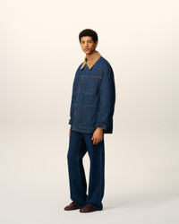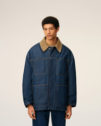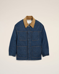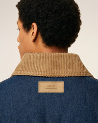 Padded worker jacket in raw indigo denim. Unisex product Collar in corduroy velvet Front closing and cuffs with metal denim buttons "ami alexandre mattiussi" patch on the back Fully lined and padded Tobacco topstitches 78 cm center back length (size XS) 80 cm center back length (size M) Made in Tunisia (with love) REF: UJK834.DE0104.402 SIZE & FIT This style is unisex and it's design to be worn oversize. Take your normal size. Man model is 187 cm / 6"2 and is wearing a size M. Woman model is 175 cm / 5"8 and is wearing a size XS. COMPOSITION & CARE GUIDE Main Material : 100% Cotton Padding : 100% Polyester Collar : 100% Cotton Body Lining : 50% Polyester 50% Cotton Machine wash at 30°c Chlorine prohibited Do not tumble dry Line dry in shade Medium iron Dry clean possible