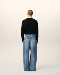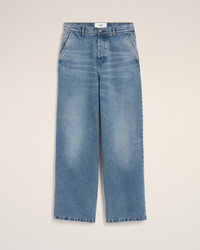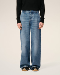 Wide fit jeans in used indigo denim. Very large fit Classic waist Very large leg Buttoned fly Denim metal rivets and buttons in nickel color 5 pockets Tightening strap on the back Tobacco topstitches 31 cm bottom leg width (size 30) Made in Portugal (with love) REF: HTR821.DE0046.480 SIZE & FIT This item is designed to be worn lose. Take your normal size. Model is 182,5 cm / 5"11 and is wearing a size 30. COMPOSITION & CARE GUIDE Main Material : 100% Cotton Pocket Lining : 65% Polyester 35% Cotton Machine wash at 30°c Chlorine prohibited Do not tumble dry Medium iron Dry clean possible Wash inside out