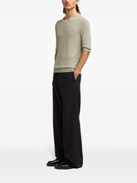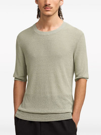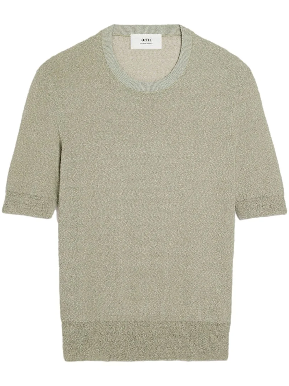 textured round-neck knitted top Highlights - Sage green - Fine knit - Round neck - Short sleeves - Ribbed trim - Straight hem Made in Italy Composition Viscose 75%, Nylon 25%