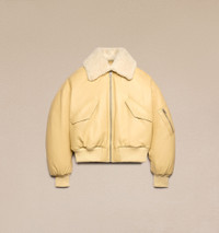 Product Description shearling-collar leather jacket from AMI Paris featuring butter yellow, lambskin, shearling collar, front zip fastening, two front flap pockets, sleeve zip pocket, long sleeves and ribbed cuffs and hem. When buying this unisex item, keep in mind that it is graded in standard men's sizing.. Boxy fit jacket in smooth lamb leather; - Boxy fit - Unisex product - 67 cm center back lenght (size M) - 65 cm center back lenght (size XS) - Lined and padded - Nickel color metal zipper double sliders - Pullers ami engraved - Flap pockets with invisible snap button - Inside pocket - Arm zipped pocket - Ribbed cuffs and waist - Removable shearling collar - Made in Turkey (with love) REF UJK027.552718 Size & Fit This style is unisex. For man, take your normal size. For woman, take one size down than your usual size. Man model is 1m86 / 6'1" and is wearing a size M. Woman model is 1m80 / 5'11" and is wearing a size XS. Materials & Care Instructions 100% Lamb Leather Find out more about product traceability.