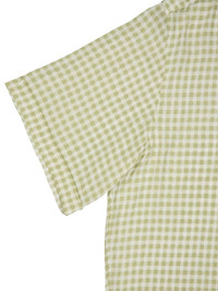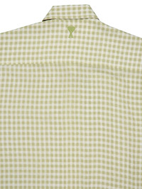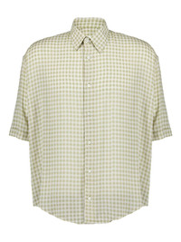 gingham-print shirt Highlights - Light olive green/white - Gingham check print - Spread collar - Drop shoulder - Short sleeves - Curved hem - Front button fastening Made in France Composition Viscose 100%