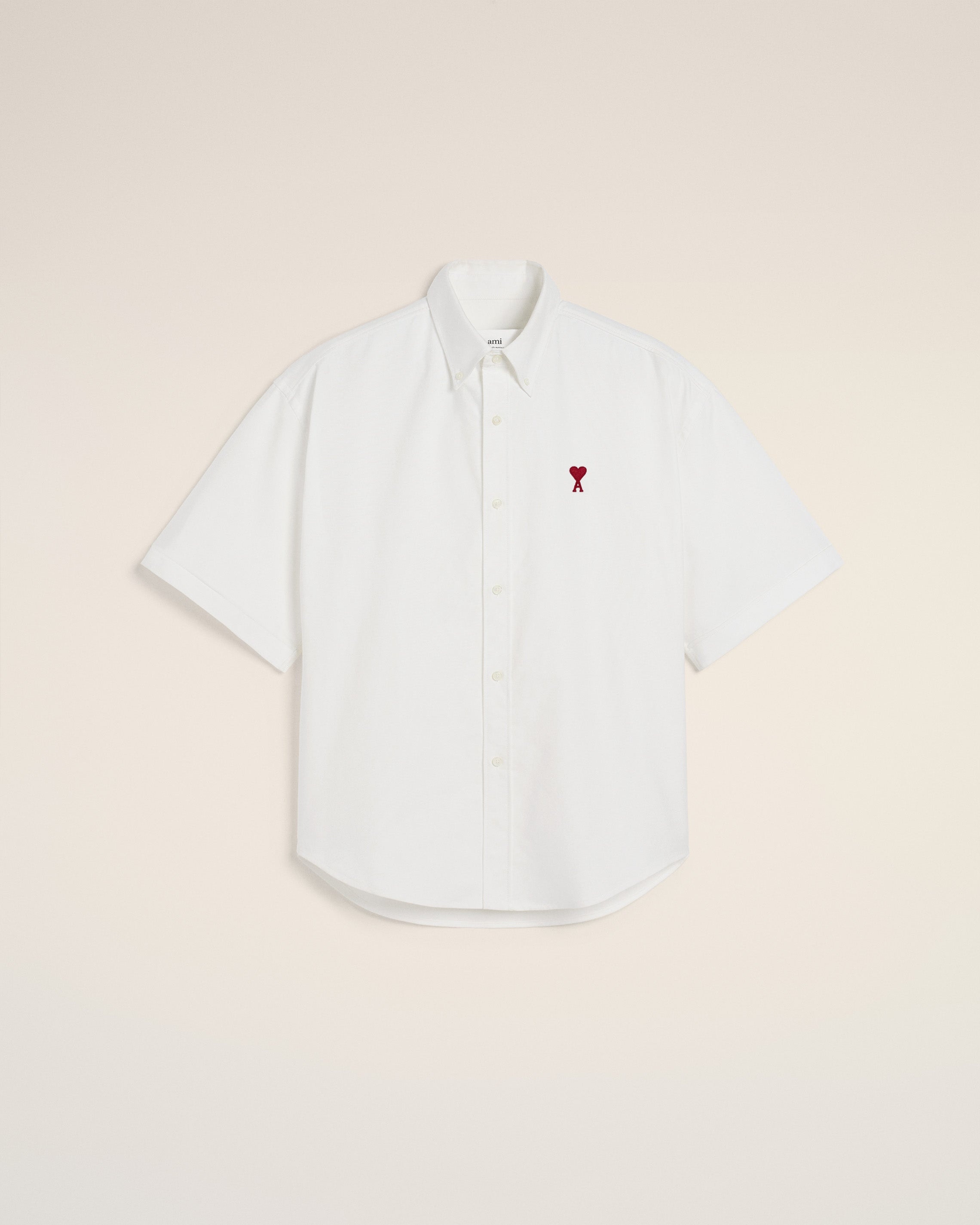 Button-down short sleeves shirt Ami de Coeur in cotton oxford. Boxy fit 80 cm center back length (size M) Red Ami de Coeur chest embroidery Button-down collar Mother-of-pearl buttons Made in Poland (with love) REF: HSH230.CO0031.168 SIZE & FIT This item is designed to be worn lose. Take your normal size. Model is 1m87 / 6'2" and is wearing a size M. COMPOSITION & CARE GUIDE 100% Cotton Chlorine prohibited Do not tumble dry Dry clean gentle Cool iron Machine wash at 30°C gentle