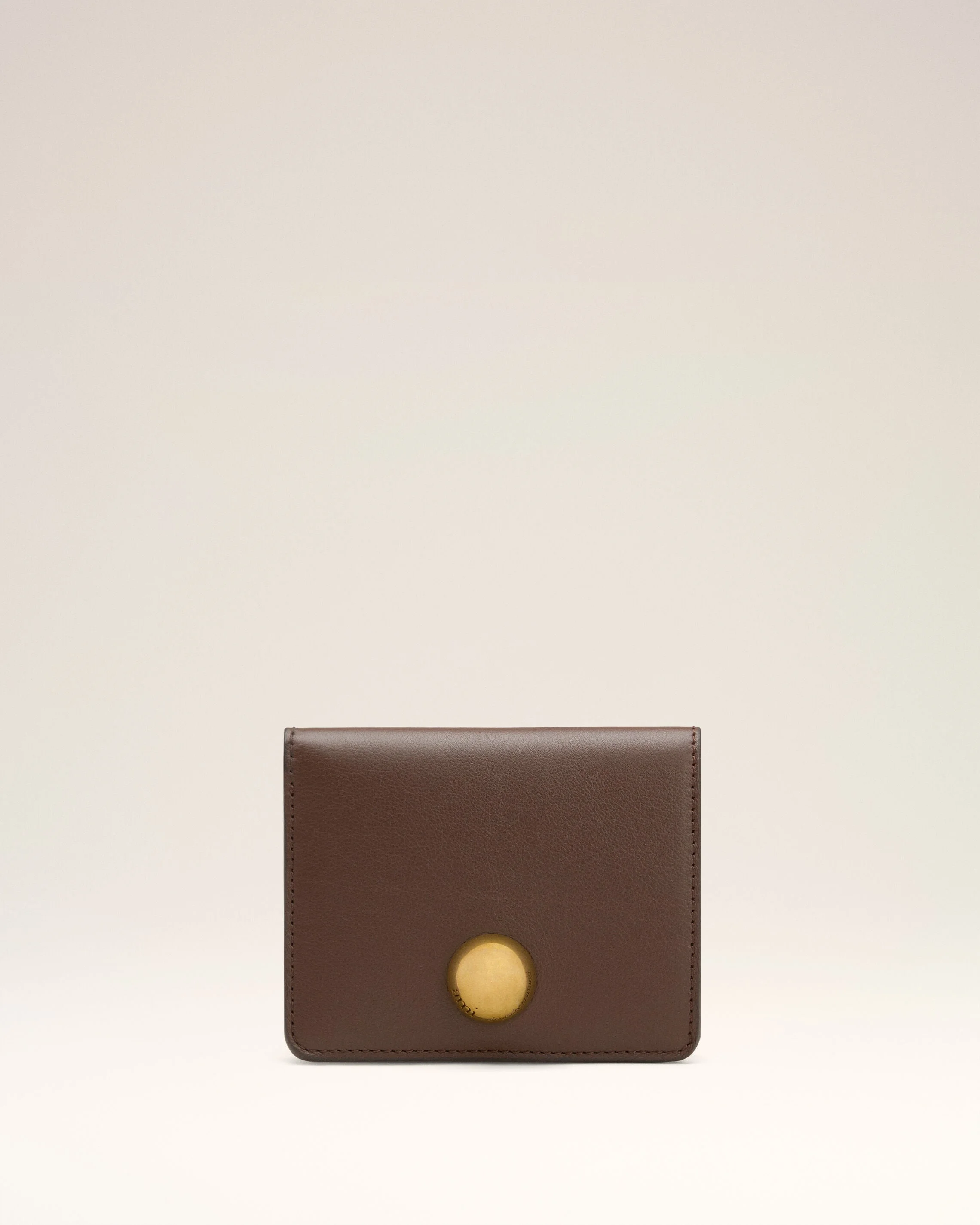 Carrousel folded wallet in smooth leather. Unisex product Calfskin Snap button fastening Metal hardware in vibrated brass color Six card compartments and one note compartment Half sphere in metal with engraved "ami alexandre mattiussi" logo Cotton canvas lining Size: 11 x 8.5 cm Made in Spain (with love) REF: USL713.AL0103.222 SIZE & FIT Size: 11 x 8.5 cm COMPOSITION & CARE GUIDE Main Material : 100% Calfskin Do not wash