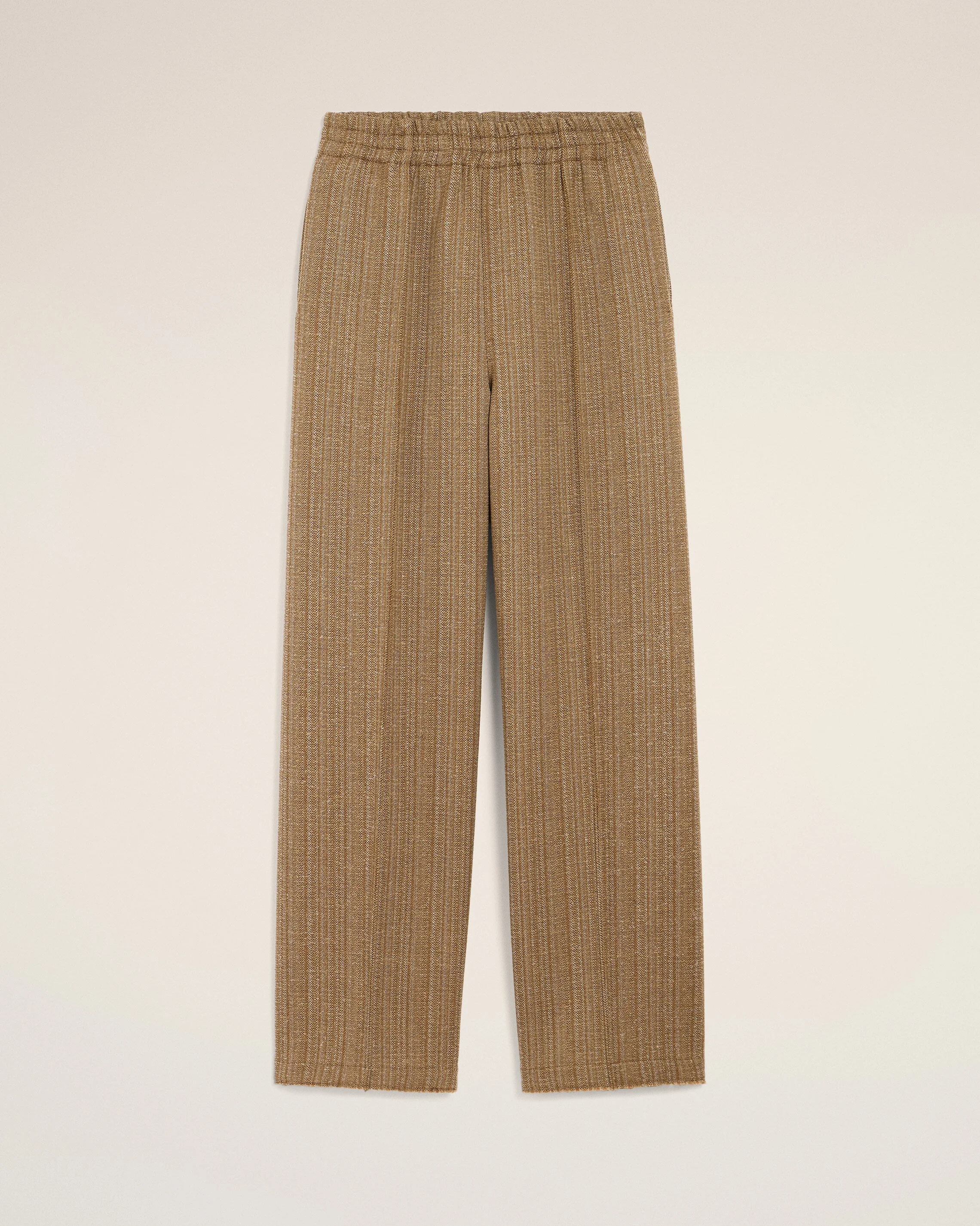 Elasticated trousers in double wool herringbone pattern. Wide fit Herringbone pattern Elasticated waist Large leg "ami alexandre mattiussi" leather label on the back pocket Water repellent fabric Lined until the knees 27 cm bottom leg width (size M) Made in Romania (with love) REF: UTR815.WV0080.2803 SIZE & FIT This style is unisex. For man, take your normal size. For woman, take one size down than your usual size. Man model is 186 cm / 6"1 and is wearing a size M. Woman model is 181 cm / 5"11 and is wearing a size XS. COMPOSITION & CARE GUIDE Main Material : 74% New Wool 15% Polyamide 7% Wool 3% Silk 1% Polyester Main Lining : 60% Acetate 40% Cupro Pocket Lining : 100% Cotton Do not wash Chlorine prohibited Do not tumble dry Cool iron Dry clean gentle