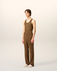 Straight fit trousers in light wool twill. Straight fit Zipped fly Buttoned back pockets Horn buttons "ami" waistband V detail on the back Front lining to knees 23 cm bottom leg width (size 40) Made in Tunisia (with love) REF: HTR506.WV0066.216 SIZE & FIT Fits true to size. Take your normal size. Model is 186 cm / 6"1 and is wearing a size 40. COMPOSITION & CARE GUIDE Main Material : 100% New Wool Main Lining : 100% Polyester Pocket Lining : 65% Polyester 35% Cotton Do not wash Chlorine prohibited Do not tumble dry Cool iron Dry clean gentle