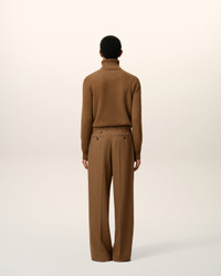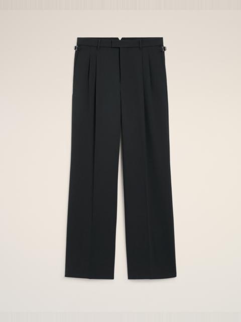 Low waist two pleats wide trousers in wool tricotine. Wide fit Low waist Zipped fly Horn buttons Buttoned back pockets "ami" waistband 2 adjustable tabs on side with metal buckle engraved ami V detail on the back Front pleats Front lining to knees 31 cm bottom leg width (size 40) Made in Romania (with love) REF: HTR812.WV0066.216 SIZE & FIT This item is designed to be worn lose. Take your normal size. Model is 187 cm / 6"2 and is wearing a size 40. COMPOSITION & CARE GUIDE Main Material : 100% New Wool Main Lining : 100% Polyester Pocket Lining : 65% Polyester 35% Cotton Do not wash Chlorine prohibited Do not tumble dry Cool iron Dry clean gentle