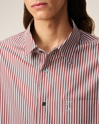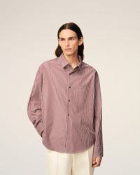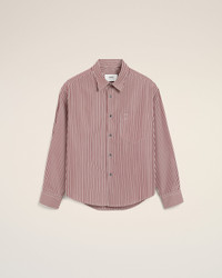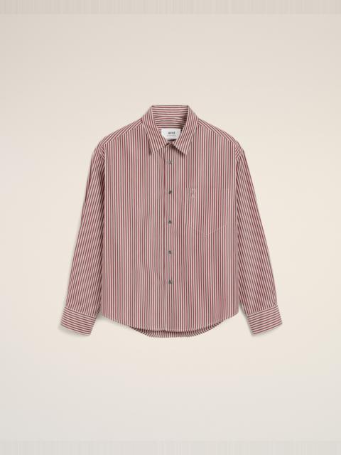 BURGUNDY COTTON EMBOSSED AMI DE COEUR STRIPED BOXY SHIRT
