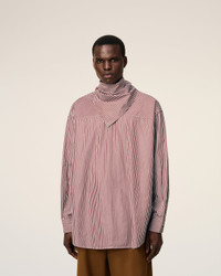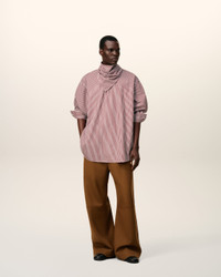 Long sleeves bandana blouse in striped cotton poplin. Unisex product Oversized fit Bandana collar Buttoned cuffs Mother of pearl buttons Horizontal Ami De Coeur silver plate under back gusset Center back length 87,2 (size XS) Center back length 90,2 (size M) Made in Bulgaria (with love) REF: UTP801.CO0133.693 SIZE & FIT This style is unisex and it's design to be worn oversize. Take your normal size. Man model is 187 cm / 6"2 and is wearing a size M. Woman model is 178 cm / 5"10 and is wearing a size XS. COMPOSITION & CARE GUIDE Main Material : 100% Cotton Chlorine prohibited Do not tumble dry Cool iron Machine wash at 30°c gentle Dry clean gentle