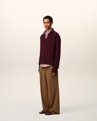 Polo in wool and cashmere cables knit. Unisex product Cable stitch Long sleeves "ami" leather label 64 cm center back length (size M) 58 cm center back length (size XS) Made in Italy (with love) REF: UPL403.KN0104.692 SIZE & FIT This style is unisex. For man, take your normal size. For woman, take one size down than your usual size. Man model is 187 cm / 6"2 and is wearing a size M. Woman model is 177 cm / 5"9 and is wearing a size XS. COMPOSITION & CARE GUIDE Main Material : 90% Wool 10% Cashmere Hand wash low temperature Chlorine prohibited Do not tumble dry Dry flat Cool iron Dry clean gentle Contains non-textile parts of animal origin