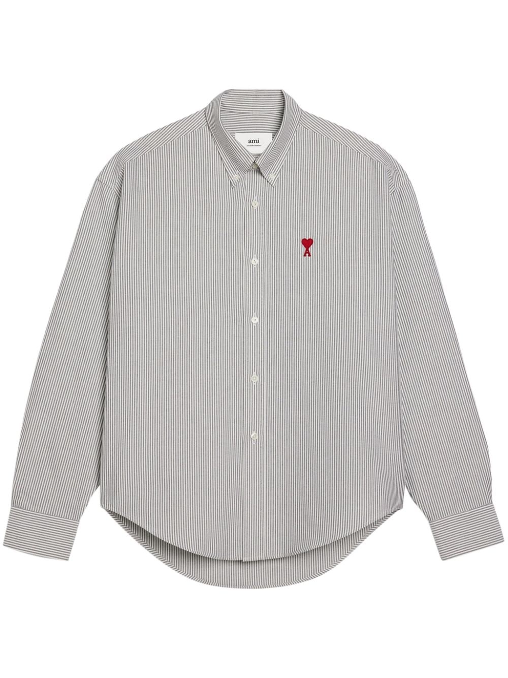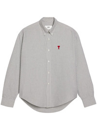 logo-embroidered striped cotton shirt Highlights - Grey/white/bordeaux red - Cotton - Poplin texture - Vertical stripe pattern - Embroidered logo at the chest - Classic collar - Front button fastening - Long sleeves - Buttoned-cuff sleeves - Curved hem - When buying this unisex item, keep in mind that it is graded in standard men's sizing. Imported Composition Cotton 100%