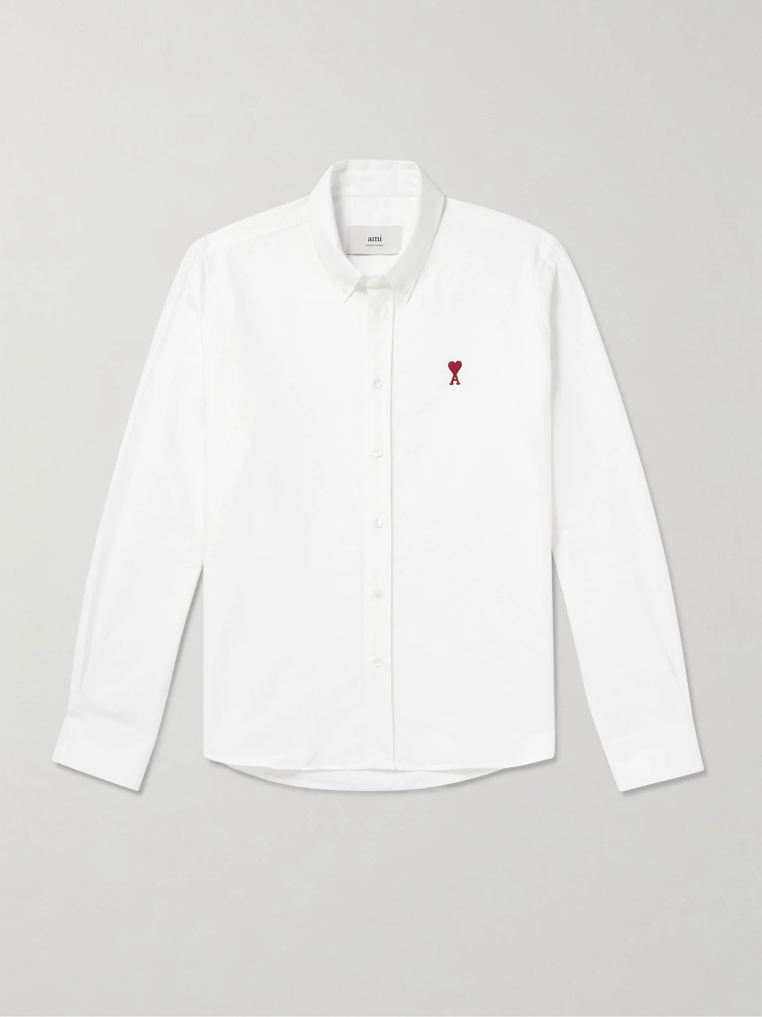 AMI PARIS' shirt is embroidered with its signature 'Ami De Coeur' logo - the motif is based on how brand founder Alexandre Mattiussi signs his name. It's tailored from sturdy cotton Oxford for a slightly loose fit with a neat button-down collar. Size & Fit - Fits true to size. Take your normal size - Designed for a slightly loose fit - Mid-weight, non-stretchy fabric - Model is shown wearing a M - Model measures: chest 38"/ 96cm, height 6'2"/ 188cm Details & Care - White cotton Oxford - Button fastenings - 100% cotton - Machine wash - Mother of pearl: New Caledonia