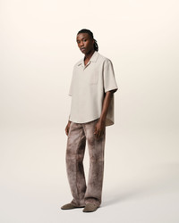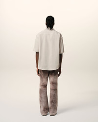 BEIGE COTTON CAMP COLLAR SHORT SLEEVES SHIRT