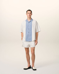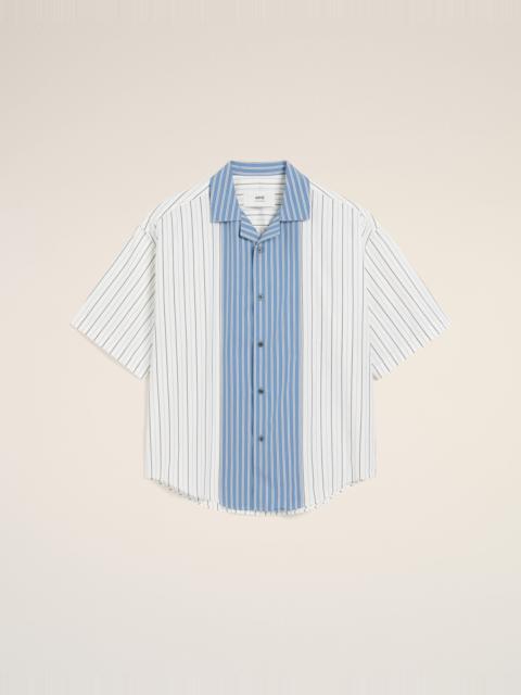 Short sleeve camp collar shirt in striped cotton poplin. Boxy fit 76 cm center back length (size 40) Front buttoned tab Camp collar Label "AMI alexandre mattiussi" handstitched under collar Mix and match of stripes cotton poplin Mother-of-pearl buttons Made in Portugal (with love) REF: HSH286.CO0109.1892 SIZE & FIT This item is designed to be worn lose. Take your normal size. Model is 1m83 / 6'0" and is wearing a size M. COMPOSITION & CARE GUIDE 100% Cotton Chlorine prohibited Do not tumble dry Dry clean petroleum solvent only on a gentle process Cool iron Machine wash at 30°C gentle