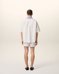 WHITE AND BLUE COTTON SHORT SLEEVE BOXY SHIRT