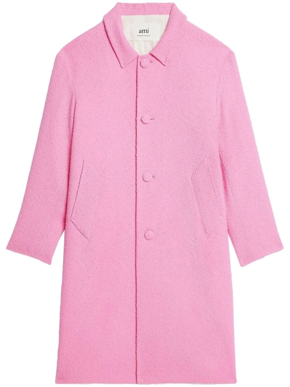 tweed single-breasted coat light pink cotton-wool blend tweed classic collar front button fastening long sleeves mid-length two side welt pockets Imported Composition Outer: Virgin Wool 45%, Polyester 44%, Cotton 6%, Polyamide 5% Lining: Cotton 50%, Polyester 50% Washing instructions Dry Clean Only