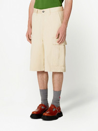 Product Description straight-leg cargo shorts from AMI Paris featuring vanilla, cotton, mid-rise, belt loops, front button and zip fastening, two diagonal pockets to the sides, two side cargo pockets and straight leg. Cargo shorts in compact cotton satin. - Oversized fit - 35 cm bottom leg width (Size M) - Leg length under the belt 63 cm (Size M) - Zipped fly - Denim metal buttons in black color - Patch pockets with flap - Back patch pockets - Made in Portugal (with love) REF HSO400.CO0009709 Size & Fit Fits true to size. Take your normal size. Materials & Care Instructions 100% Cotton Machine wash at 30°C gentle Do not bleach Do not tumble dry Line drying in the shade Cool iron Dry clean possible Wash inside out