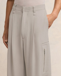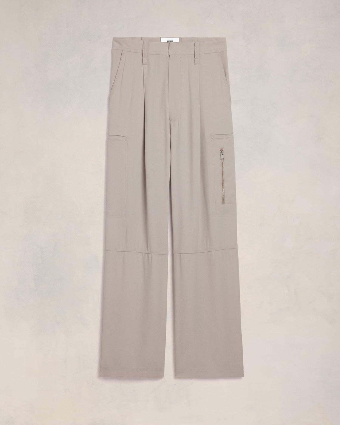 Cargo trousers in viscose and acetate mat crepe. 32 cm bottom leg width (size M) Zipped fly Adjustment at the ankles with snap buttons Patch pockets and zipped pocket on the legs Made in Portugal (with love) REF : HTR301.AC0009.271 SIZE & FIT Fits true to size. Take your normal size. Model is 1m86 / 6'1'' and is wearing a size M. COMPOSITION & CARE GUIDE 73% Acetate, 27% Viscose Do not wash Chlorine prohibited Do not tumble dry Cool iron Dry clean petroleum solvent only on a gentle process Professional cleaning with water prohibited
