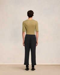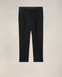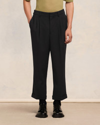 Carrot fit trousers in wool and viscose twill. Carrot fit 22 cm bottom leg width (size 40) Front lining to knees Front pleats Buttoned fly ami rocap waistband Buttoned back pockets Made in Tunisia (with love) REF : HTR100.VI0007.001 SIZE & FIT Fits true to size. Take your normal size. Model is 1m88 / 6'2" and is wearing a size 40. COMPOSITION & CARE GUIDE 55% Viscose, 45% New Wool Do not wash Chlorine prohibited Do not tumble dry Cool iron Dry clean petroleum solvent only on a gentle process
