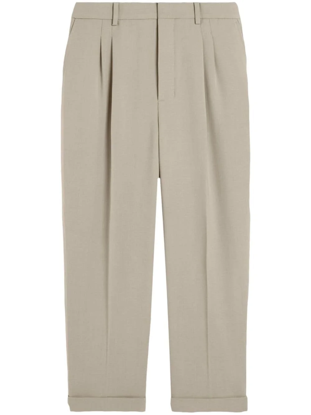 pressed-crease tapered trousers Highlights - Taupe brown - Virgin wool blend - Pressed crease - Pleat detailing - Belt loops - Concealed front fastening - Tapered leg - Two side slash pockets - Two rear button-fastening jetted pockets - Turn-up hem Made in France Composition Viscose 55%, Virgin Wool 45% Washing instructions Read Manufacturer Guidelines