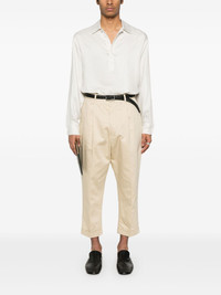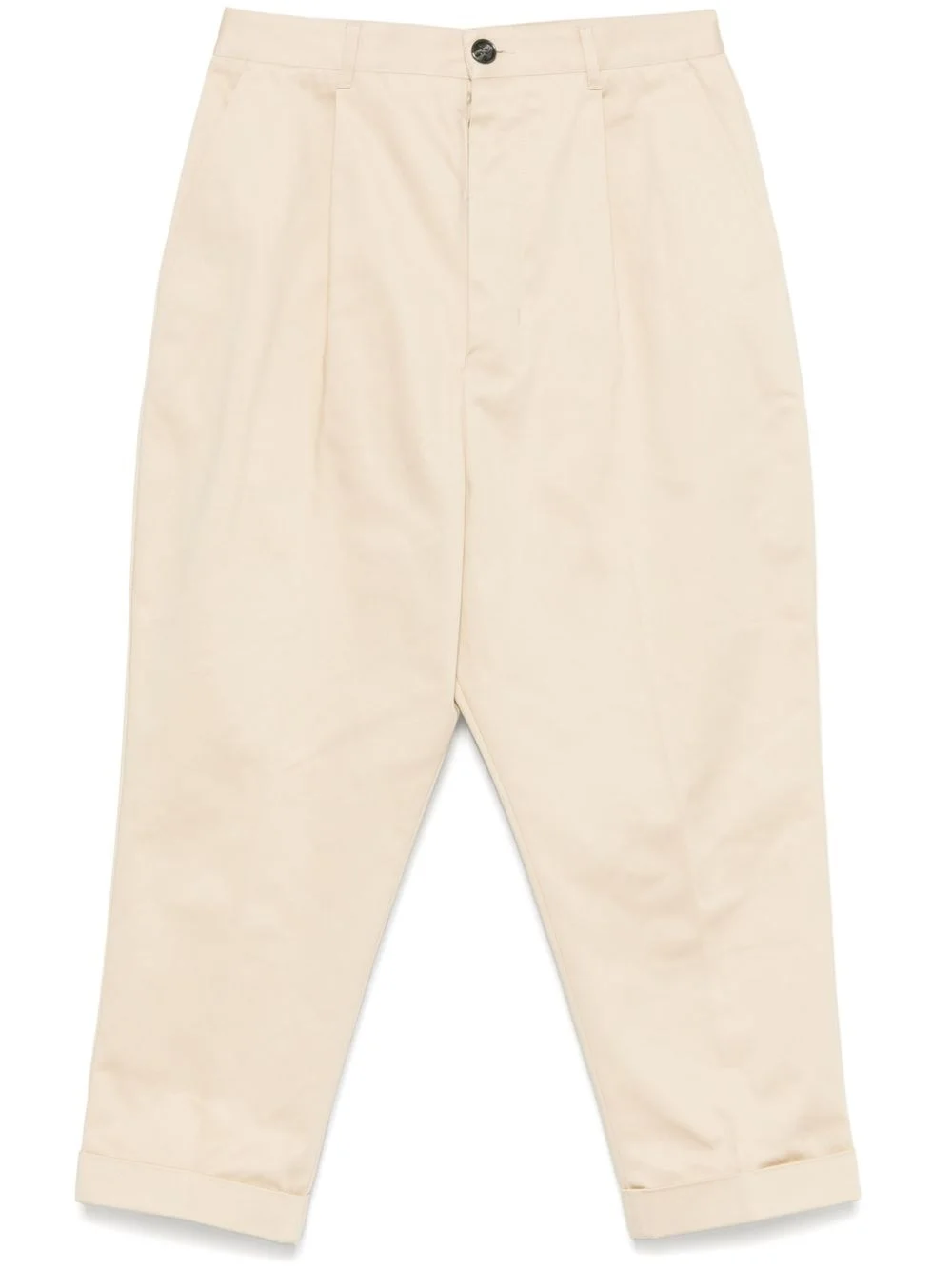 tapered cropped trousers Highlights - Light beige - Concealed fly and button fastening - Belt loops - Two diagonal pockets to the sides - Two rear flap pockets Imported Composition Cotton 100% SIZE & FIT Model measurements Height 6 ft 2 in(1.89 m) Bust/Chest 35.03 in(89 cm) Hips 38.18 in(97 cm) Waist 29.92 in(76 cm) FittingInformation Designed for a tapered leg, offering a loose unrestricted fit over the leg with a closer fit towards the ankle Cropped in length Made from a midweight non-stretch fabric