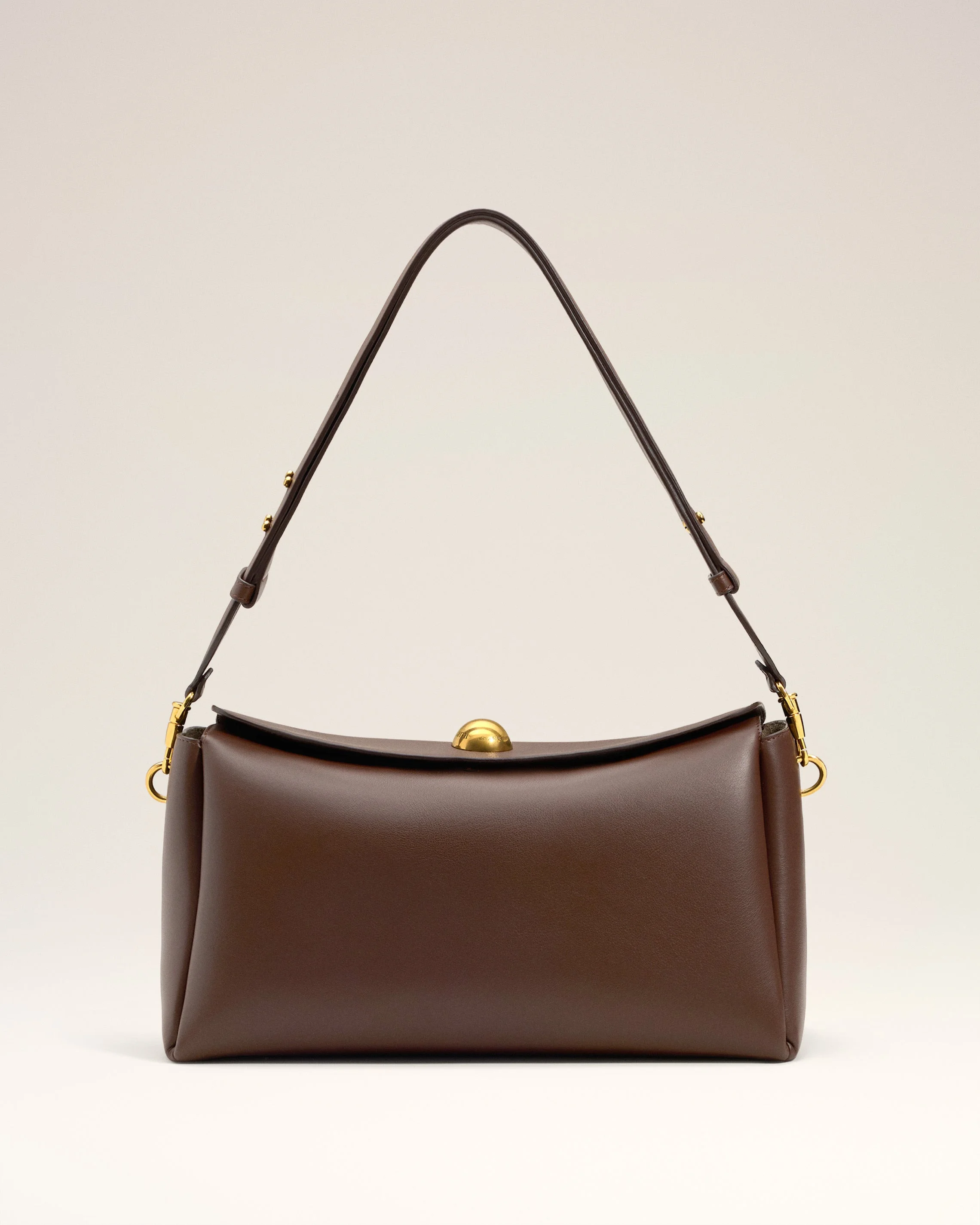 Carrousel medium bag in smooth leather. Unisex product Calfskin Adjustable and removable leather strap, crossbody or shoulder carry Magnetic flap closure One main compartment with an inside patched pocket Metal hardware in vibrated brass color Half sphere in metal with engraved "ami alexandre mattiussi" logo Suede leather lining Size: 33 x 17.5 x 12 cm Made in Spain (with love) REF: ULL712.AL0103.222 SIZE & FIT Size: 33 x 17.5 x 12 cm COMPOSITION & CARE GUIDE Main Material : 100% Calfskin Main Lining : 100% Calfskin Do not wash