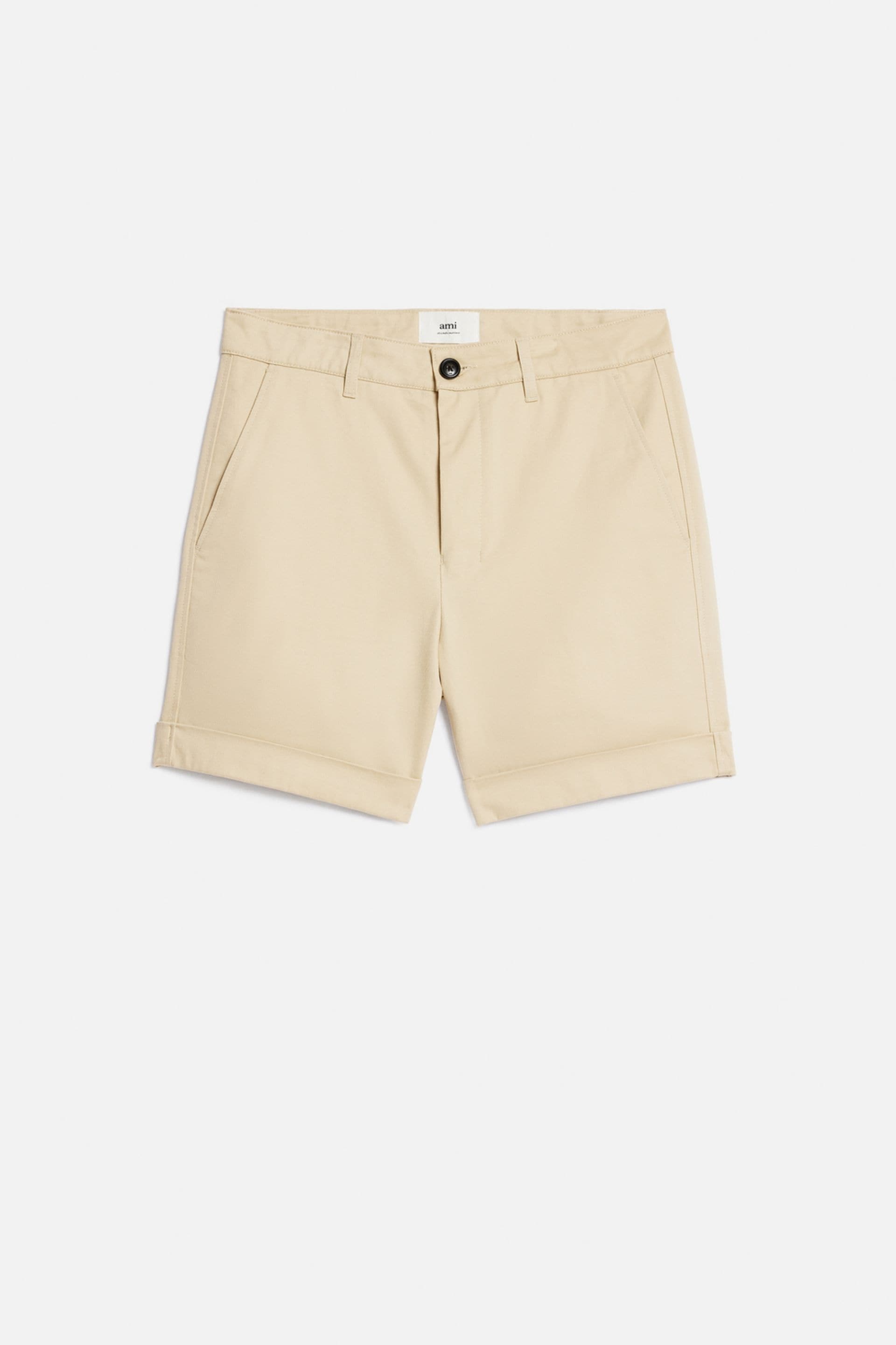 Product Description buttoned chino shorts from AMI Paris featuring vanilla white, cotton, front button fastening, belt loops, above-knee length, two side slit pockets and two rear button-fastening pockets. Chino short pants in cotton gabardine. - Classic fit - 28 cm bottom leg width (Size M) - Buttoned fly - Ami engraved tonal buttons - Made in Portugal (with love) REF HSO001.CO0020709 Size & Fit Fits true to size. Take your normal size. Materials & Care Instructions 100% Cotton Machine wash at 30°C gentle Do not bleach Do not tumble dry Line drying in the shade Do not iron Dry clean gentle Wash inside out