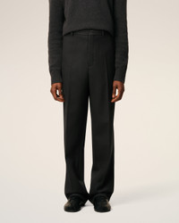 BLACK WOOL WIDE TROUSERS