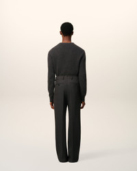 Wide fit trousers in wool gabardine. Wide fit Hidden buttoned front fly Horn buttons Side pockets Back welt pockets with buttons "ami" waistband V cut detail on the back belt Front pleats Front lining to knees 30 cm bottom leg width (size 40) Made in Portugal (with love) REF: HTR423.WV0088.020 SIZE & FIT This item is designed to be worn lose. Take your normal size. Model is 182,5 cm / 5"11 and is wearing a size 40. COMPOSITION & CARE GUIDE Main Material : 100% New Wool Main Lining : 50% Polyester 50% Cotton Pocket Lining : 100% Cotton Do not wash Chlorine prohibited Do not tumble dry Cool iron Dry clean petroleum solvent only on a gentle process