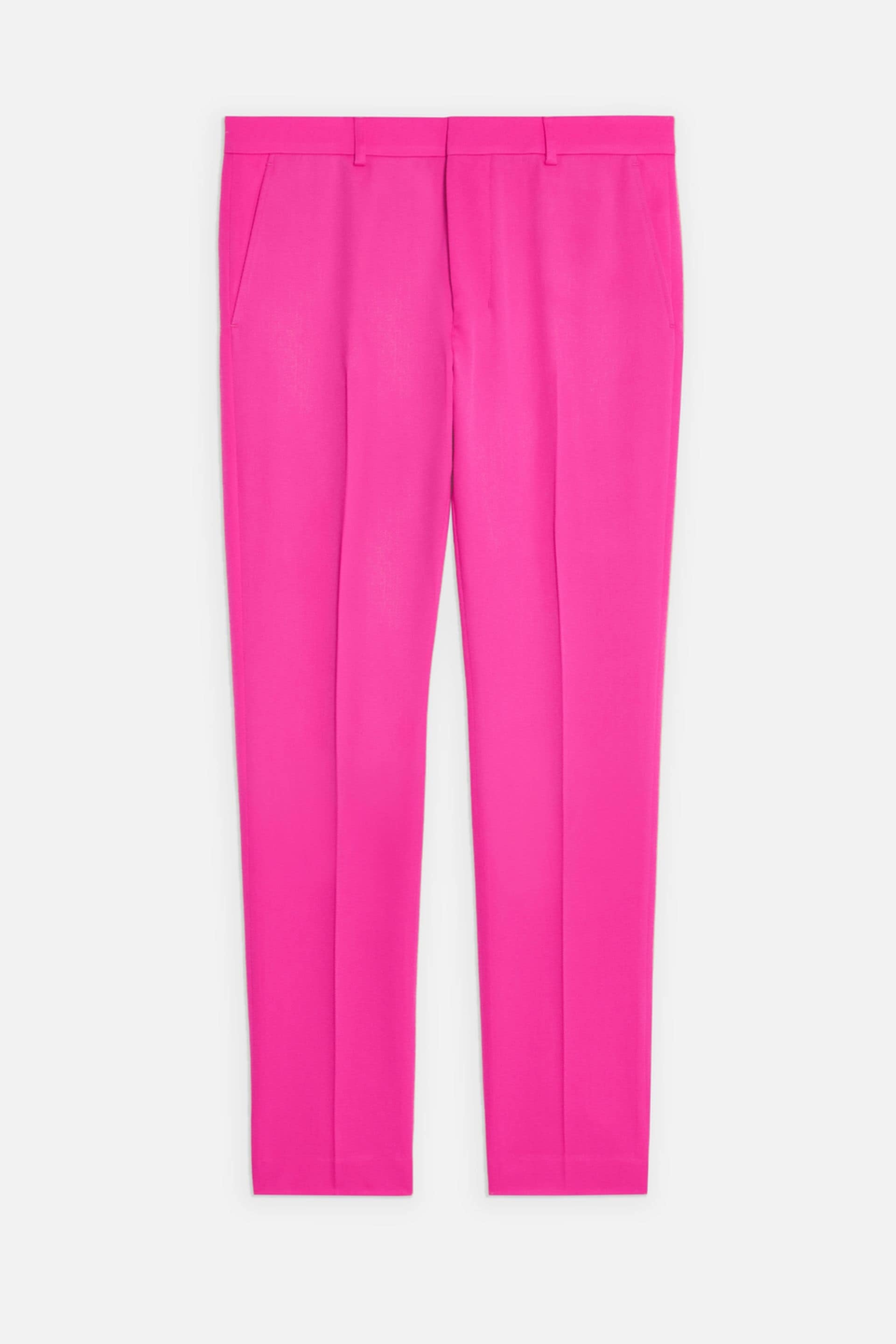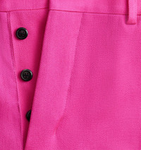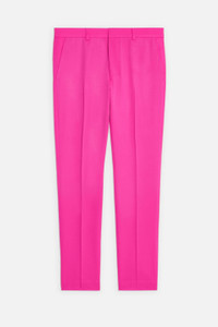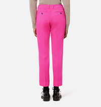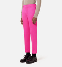 Product Description Hot pink wool tailored wool trousers from AMI Paris featuring belt loops, concealed front fastening, two side inset pockets and two rear button-fastening pockets. Cigarette trousers in wool gabardine. - Cigarette fit - 18 cm leg opening (size 40) - Front lining to knees - Buttoned fly - ami personalised rocap waistband - Buttoned back pockets - ami engraved black horn buttons REF HTR004.286618 Size & Fit Fits true to size. Take your normal size. Materials & Care Instructions DO NOT WASH, DO NOT BLEACH, DO NOT TUMBLE DRY, COOL IRON, DRY CLEAN GENTLE, CONTAINS NON-TEXTILE PARTS PF ANIMAL ORIGIN