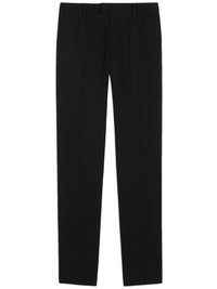 tailored trousers Highlights - Black - Virgin wool blend - Mid-rise - Belt loops - Off-centre front fastening - Two diagonal pockets to the sides - Two rear button-fastening pockets - Slim cut Made in Italy Composition Viscose 55%, Virgin Wool 45% SIZE & FIT Measurement INSIDE LEG 36.22 in(92 cm) FRONT RISE 11.41 in(29 cm) HIPS 39.37 in(100 cm) Washing instructions Read Manufacturer Guidelines