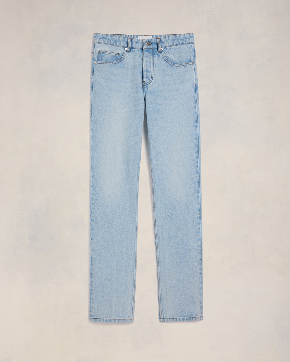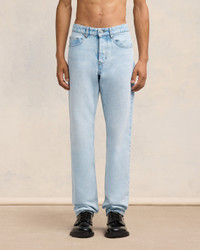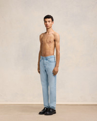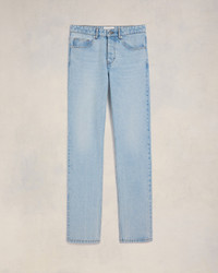 Classic fit jeans in used javel indigo. Classic fit 19 cm bottom leg width (size 30) Classic waist Fitted leg 5 pockets Buttoned fly Denim metal rivets and buttons in nickel color Ami de Coeur rivet Beige ami patch in synthetic leather on the back Tobacco topstitches Made in Portugal (with love) REF : HTR001.DE0027.448 SIZE & FIT Fits true to size. Take your normal size. Model is 1m86 / 6'1'' and is wearing a size 30. COMPOSITION & CARE GUIDE 100% Cotton Machine wash at 30°C Chlorine prohibited Do not tumble dry Line dry in shade Medium iron Dry clean possible Wash and iron inside out