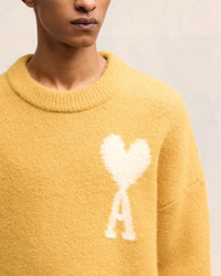 Sweater in hairy alpaca knit. Unisex product Interlock stitch Fur stitch intarsia-knitted off white Ami de Coeur on the chest 62 cm center back length (Size M) 56 cm center back length (Size XS) Made in Portugal (with love) REF : UKS025.KN0032.724 SIZE & FIT This style is unisex and designed to be worn lose. For man, take your normal size. For woman, take one size down than your usual size. Man model is 1m87 / 6'2" and is wearing a size M. Woman model is 1m78 / 5'10" and is wearing a size XS. COMPOSITION & CARE GUIDE 71% Alpaca, 22% Polyamide, 4% Wool, 3% Elastane Hand wash low temperature Chlorine prohibited Do not tumble dry Flat drying in the shade Cool iron Dry clean gentle