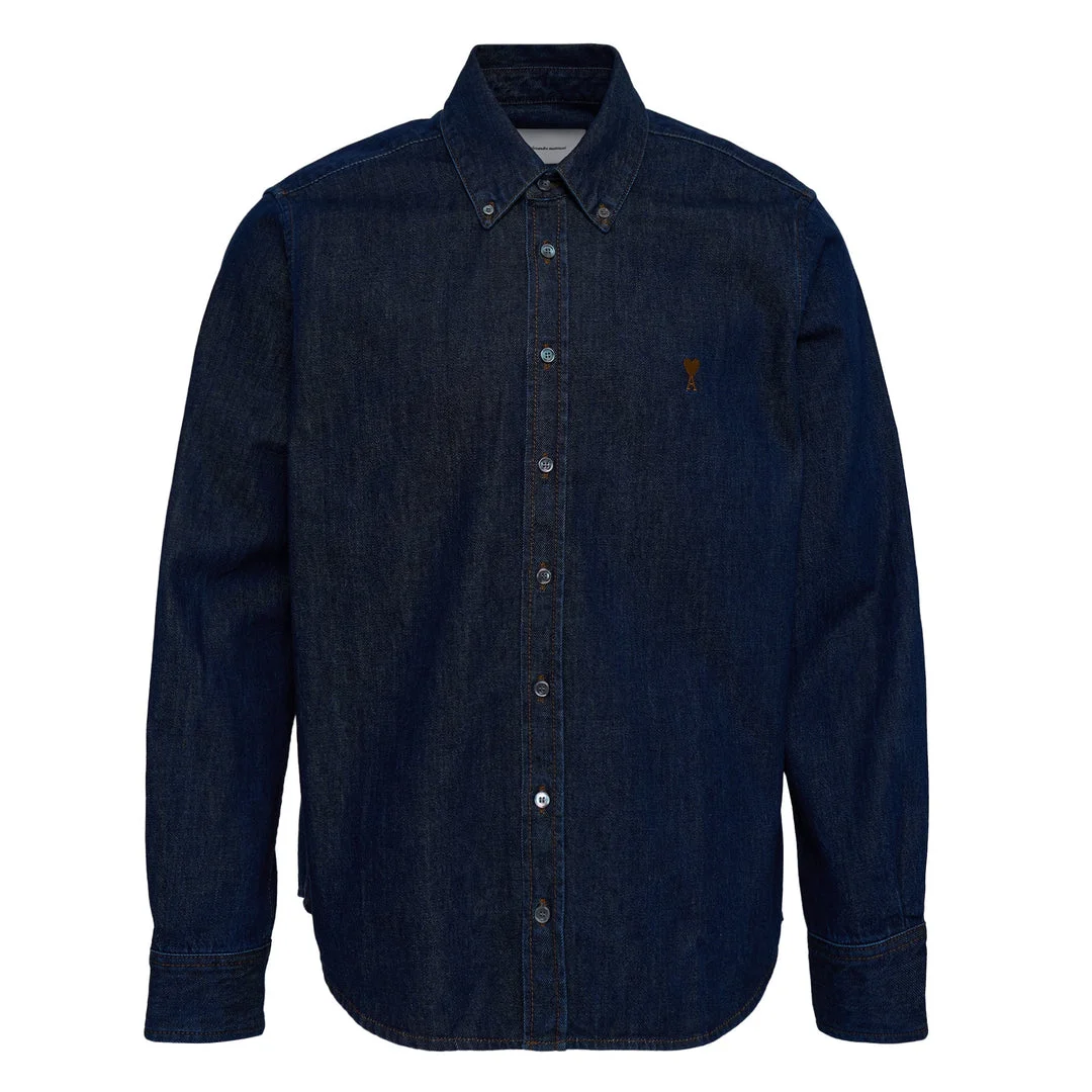 600079330BLU00L / USH786.DE0123/00/402 - Button-down collar with collar stays - Long sleeves with barrel cuffs - Full button front closure - Ami de Coeur heart logo embroidery - Premium denim construction - Classic relaxed fit - Chest pocket detail AMI Contrasted Ami De Coeur Shirt delivers contemporary French style with signature brand elements and refined casual aesthetics. Crafted from premium denim in deep indigo wash, featuring the iconic Ami de Coeur embroidery and classic button-down construction. The relaxed fit and timeless denim styling create a versatile wardrobe essential with Parisian sophistication.