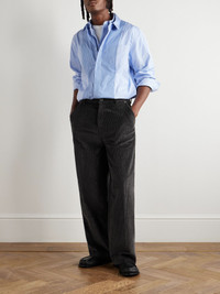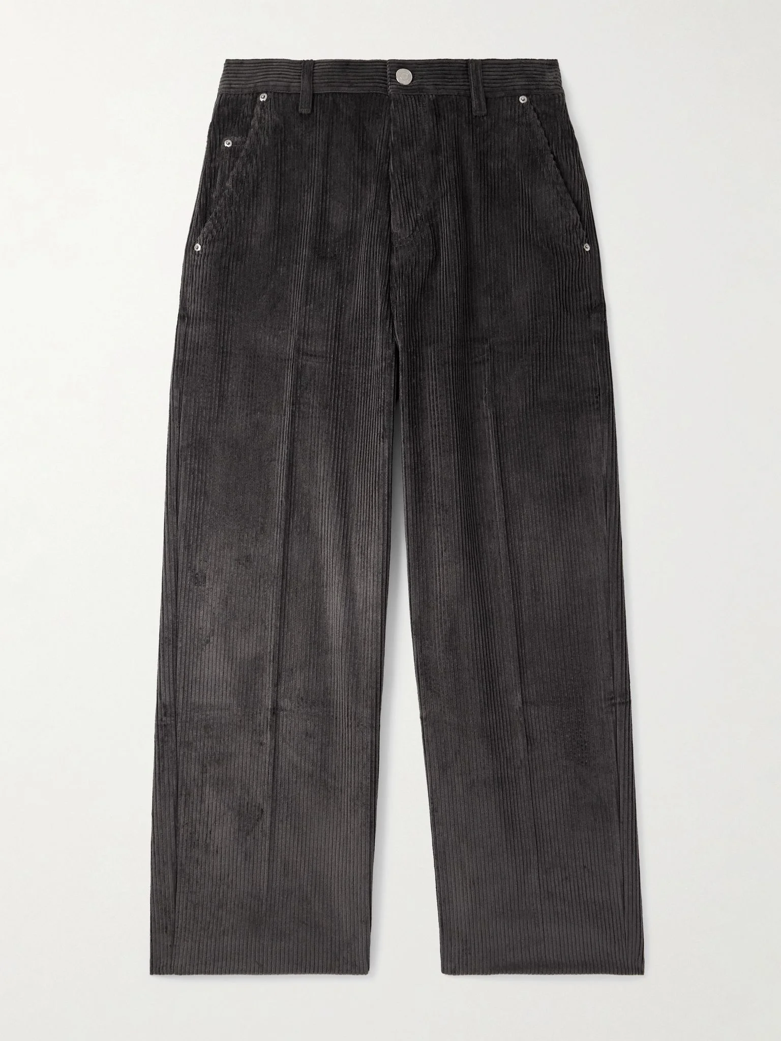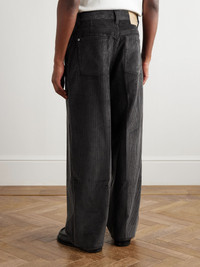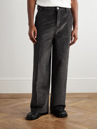 AMI PARIS' trousers are made from cotton-corduroy, which has a velvety texture and soft lustre. They're cut quite wide and detailed with silver-tone rivets and a leather back patch, like traditional jeans. Team yours with loafers or sneakers. Size & Fit - Fits true to size. Take your normal size - Wide leg, low-crotch style - Mid-weight, non-stretchy fabric - Model is shown wearing an IT 48 - Model measures: waist size 32, height 6'0"/ 183cm Details & Care - Black cotton-corduroy - Button fastenings - 100% cotton - Machine wash