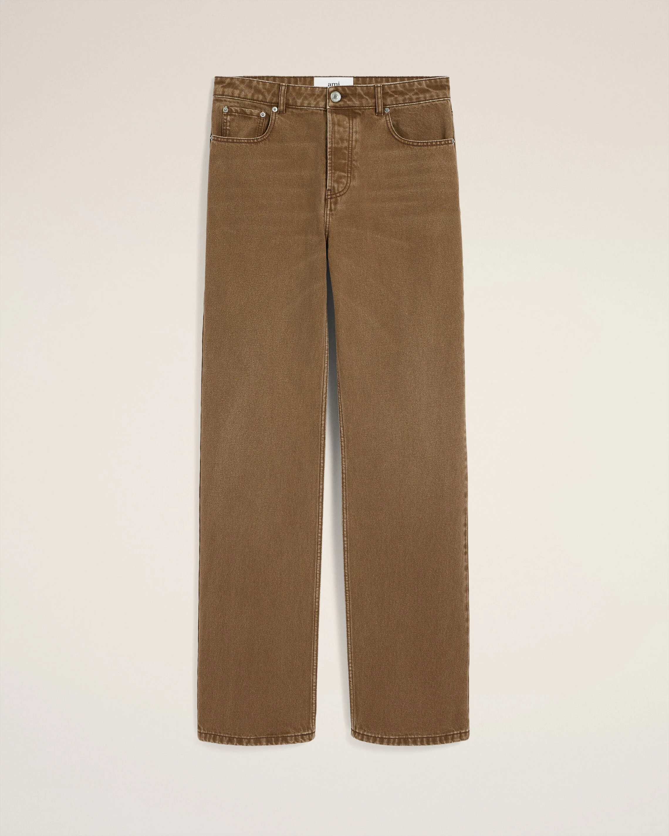 Large fit jeans in colored cotton twill. Large fit Classic waist Large leg Buttoned fly 5 pockets Denim metal rivets and buttons in nickel color "ami alexandre mattiussi" patch on the back 27 cm bottom leg width (size 30) Made in Portugal (with love) REF: HTR450.DE0112.216 SIZE & FIT Fits true to size. Take your normal size. Model is 187 cm / 6"2 and is wearing a size 30. COMPOSITION & CARE GUIDE Main Material : 100% Cotton Pocket Lining : 65% Polyester 35% Cotton Machine wash at 30°c Chlorine prohibited Do not tumble dry Medium iron Dry clean possible Wash inside out Wash with similar colours
