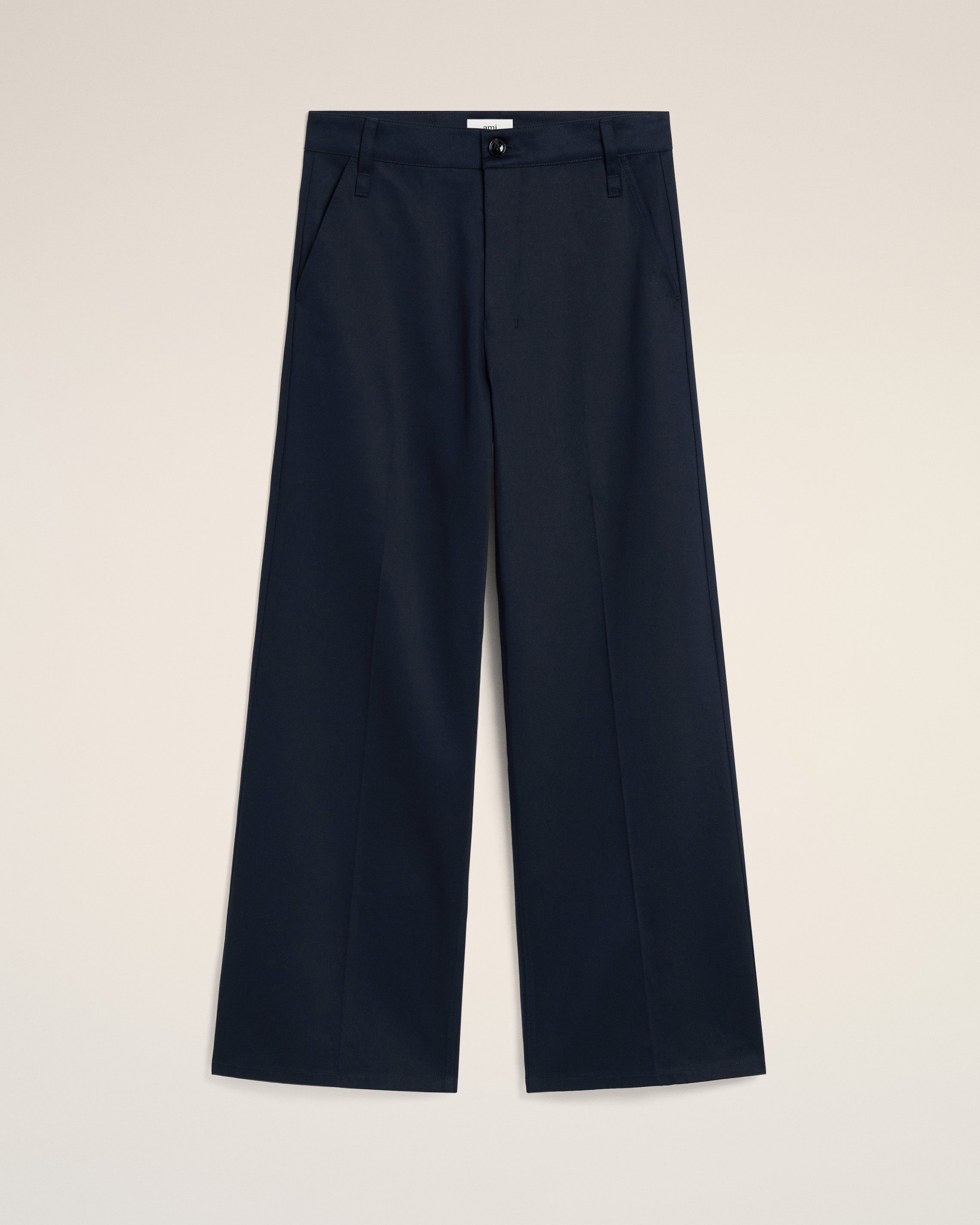 Baggy fit trousers in compact cotton satin. Baggy fit 33 cm bottom leg width (size M) Classic waist Low crotch Wide leg Buttoned fly "ami alexandre mattiussi" patch on the back Made in Portugal (with love) SIZE & FIT Fits true to size. Take your normal size. COMPOSITION & CARE GUIDE 100% Cotton Machine wash at 30°C gentle Chlorine prohibited Do not tumble dry Cool iron Dry clean possible